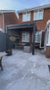 Juts bought this Pergola and installed it today. It looks beautiful and the material seems to be really high quality none of that cheap net or light metal. Not to mention it was super easy to install too. It’s very functional for hot sunny days because you’re able to open up the roof and close it too. It’s also functional for rainy weather because it can keep everything dry which is amazing great since I have furniture placed inside already. The build seems very durable and stable so no complaints there. I would highly suggest buying this if you’re wanting to buy something aesthetic and modern, and something to fill up your back yard!