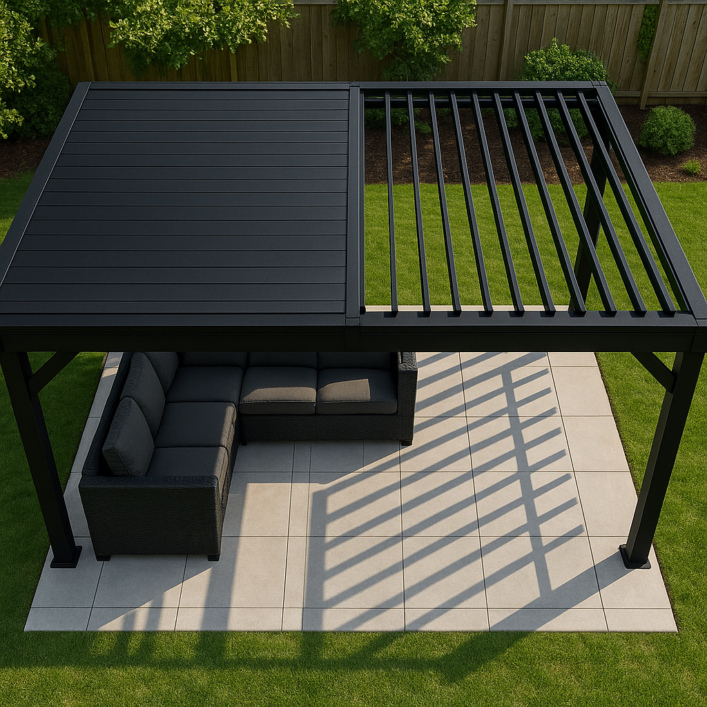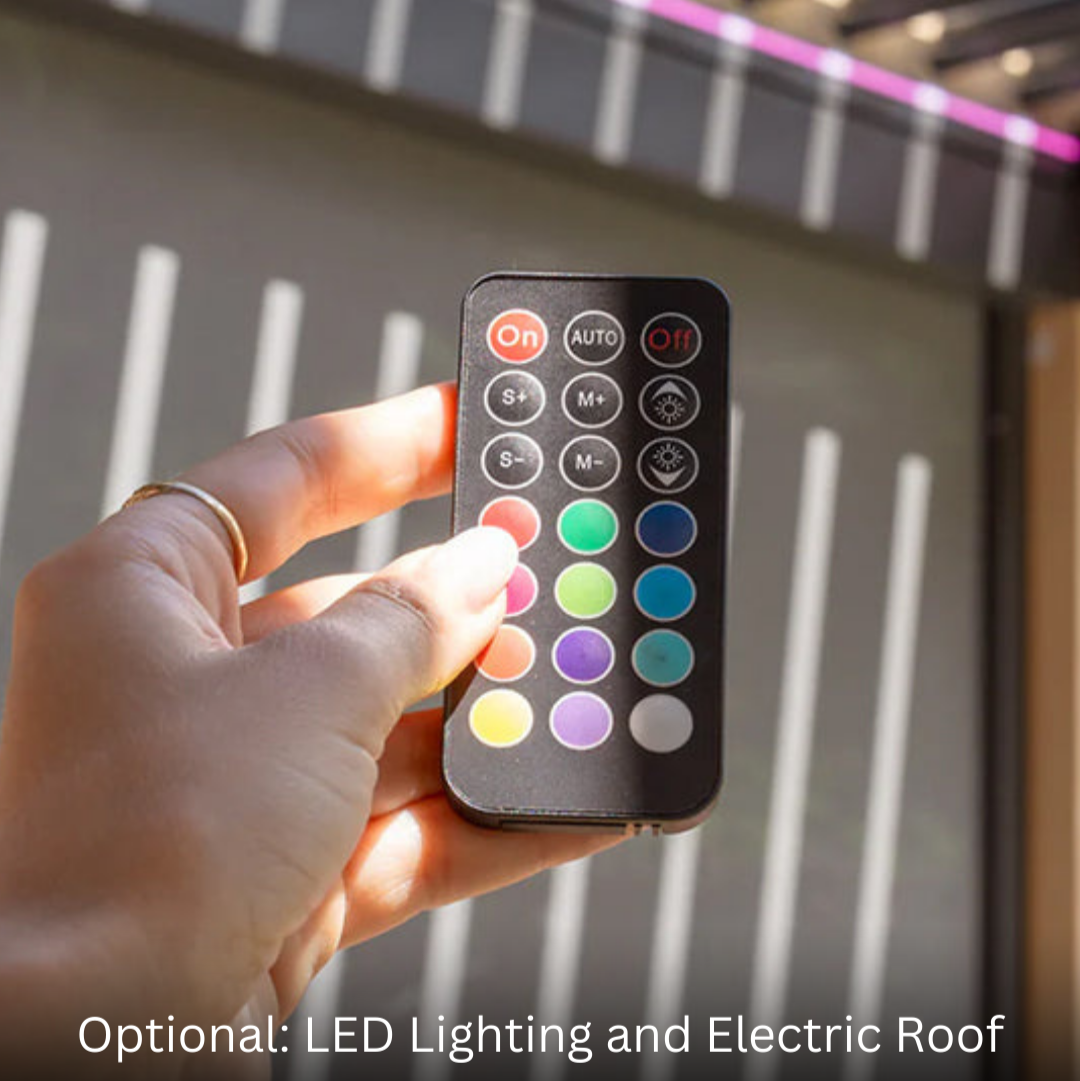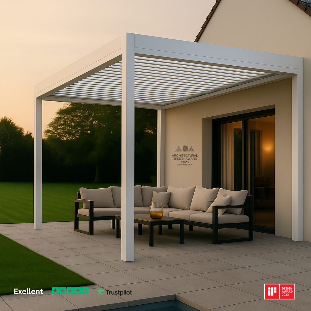 Transform your outdoor space into a luxurious retreat with our innovative motorized pergola, offering sun, shade, and elegance at the touch of a button.